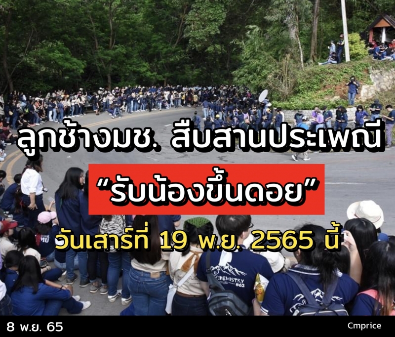 มหาวิทยาลัยเชียงใหม่ สืบสานประเพณี “รับน้องขึ้นดอย” “ลูกจ๊างขึ้นดอย ปิ๊กฮอยศรัทธา เหมันต์ไหว้สา พระธาตุเจ้าดอยสุเทพ” นำนักศึกษาชั้นปีที่ 1-3 กว่า 18,000 คน เดินจากมหาวิทยาลัยเชียงใหม่ขึ้นไปนมัสการพระบรมธาตุดอยสุเทพ ในวันเสาร์ที่ 19 พฤศจิกายน 2565 นี้