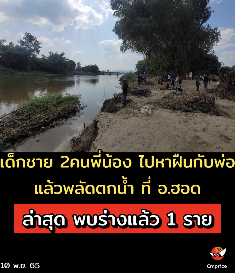 เด็กชาย 2คนพี่น้อง ไปหาฝืนกับพ่อแล้วหายไป คาดพลัดตกน้ำปิง ใกล้สะพานข้ามน้ำปิงบ้านกองหิน อ.ฮอด เจ้าหน้าที่เร่งค้นหา