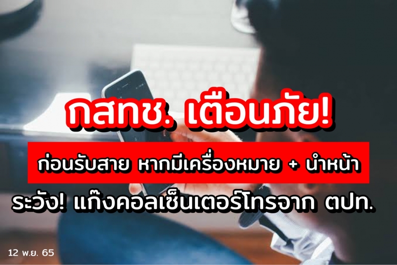 | • กสทช. เตือนภัย! ก่อนรับสาย หากมีเครื่องหมาย + นำหน้า ระวัง! แก๊งคอลเซ็นเตอร์โทรจากต่างประเทศ |