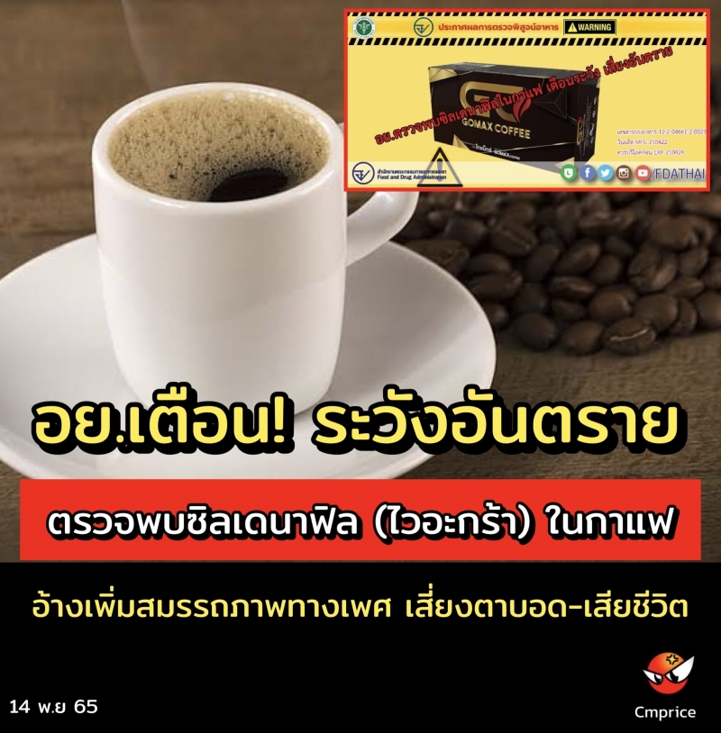 | • อย. ตรวจพบซิลเดนาฟิลในกาแฟ เตือนระวัง เสี่ยงอันตราย |