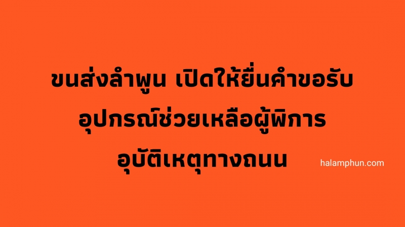 ขนส่งลำพูน เปิดให้ยื่นคำขอรับจัดสรรอุปกรณ์ช่วยเหลือผู้พิการที่ประสบภัยจากการใช้รถใช้ถนน เปิดรับคำขอตั้งแต่บัดนี้ ถึง 29 ธ.ค.65