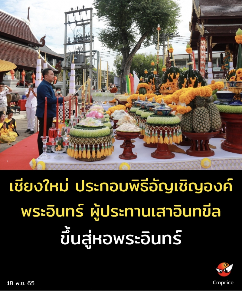 วันนี้ (18 พ.ย. 65) เวลา 14.19 น. นายนิรัตน์ พงษ์สิทธิถาวร ผู้ว่าราชการจังหวัดเชียงใหม่ เป็นประธานประกอบพิธีอัญเชิญองค์อัมรินทร์ ท้าวสักกะเทวราช หรือ องค์พระอินทร์ ผู้ประทานเสาอินทขีล หรือ เสาหลักเมืองเชียงใหม่ ขึ้นประดิษฐาน ณ หอพระอินทร์ ซึ่งคณะสงฆ์และคณะผู้มีจิตศรัทธาได้ร่วมกันสร้างขึ้นไว้ภายในวัดเจดีย์หลวงวรวิหารอำเภอเมืองเชียงใหม่ จังหวัดเชียงใหม่ เพื่อให้เป็นที่ประทับขององค์พระอินทร์ ที่ก่อนหน้านี้ไม่เคยมีมาก่อน ซึ่งนับเป็นมงคลครั้งประวัติศาสตร์กับตำนานเสาอินทขีล เสาหลักเมืองเชียงใหม่ ในรอบ 222 ปี โดยมีพุทธศาสนิกชน เข้าร่วมพิธีจำนวนมาก