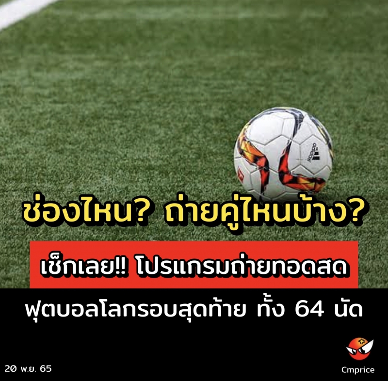 | • เช็กเลย!! โปรแกรมถ่ายทอดสดฟุตบอลโลกรอบสุดท้าย ทั้ง 64 นัด ช่องไหน ถ่ายคู่ไหนบ้าง |