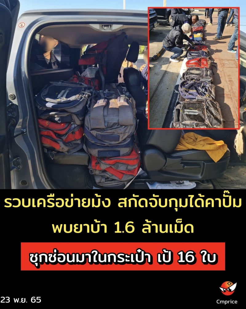 หลังสืบทราบว่า กลุ่มชาติพันธุ์ม้ง ซึ่งมีภูมิลำเนาในอำเภออุ้มผางและพบพระ จังหวัดตาก มักลักลอบลำเลียงยาเสพติดจากพื้นที่ทางภาคเหนือ เพื่อนำไปจำหน่ายให้กับลูกค้าในพื้นที่ กทม. และจังหวัดใกล้เคียงเป็นประจำ วันที่ 20 พ.ย. ที่ผ่านมาพบว่าจะลำเลียงยาเสพติดจำนวนมาก จากพื้นที่จังหวัดเชียงราย เพื่อนำไปส่งมอบให้กับลูกค้าโดยจะใช้รถกระบะ และรถยนต์ใช้ในขนส่ง กระทั่งช่วงเช้าของวันที่ 21 พ.ย. เจ้าหน้าที่ตำรวจได้สะกดรอบติดตามรถของขบวนการซึ่งตรงตามที่สืบทราบมา จนเวลาประมาณ 16.00 น. สามารถสกัดจับรถต้องสงสัยคือ รถกระบะ ISUZU D-MAX สีเทา หมายเลขทะเบียน ผค 394 พิษณุโลก ซึ่งใช้ซุกซ่อนยาเสพติด และรถยนต์ HONDA CIVIC หมายเลขทะเบียน กย 2637 ลำปาง มี นายเนติพงษ์ แซ่ว้าง, นายนพเดช แซ่ซ้ง และ นายเอกภพ แซ่เฮ่อ เป็นผู้ขับขี่และนั่งมากับรถ ตรวจสอบในรถพบยาบ้า ถูกซุกซ่อนมาในกระเป๋า 16 ใบ รวม 1,600,000 เม็ด ภายในรถกระบะ นอกจากนี้ยังได้ตรวจยึดโทรศัพท์มือถือ 7 เครื่อง, ไอแพดสีดำ 1 เครื่อง ทั้งหมดรับว่า รับจ้างขนยาบ้าไปส่งลูกค้าตามที่ผู้ว่าจ้างสั่งการจึงแจ้งข้อกล่าวหา “ร่วมกันกับพวกที่หลบหนี จำหน่ายโดยการมีไว้เพื่อจำหน่ายซึ่งยาเสพติดให้โทษประเภท 1 (ยาบ้า) อันเป็นการทำให้เกิดผลกระทบต่อความมั่นคง ของรัฐหรือความปลอดภัยของประชาชนทั่วไปก่อให้เกิดการแพร่กระจายในกลุ่มประชาชน” โดยจับกุมผู้ต้องหาทั้ง 3 คน ได้ที่บริเวณสถานีบริการปั๊มน้ำมัน ปตท.ถนนกำแพงเพชร-สุโขทัย ตำบลพรานกระต่าย อำเภอพรานกระต่าย จังหวัดกำแพงเพชร