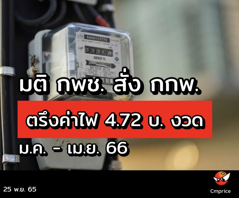 | • มติ กพช. สั่ง กกพ.ตรึงค่าไฟ 4.72 บ. งวด ม.ค. - เม.ย. 66 ลดภาระค่าไฟฟ้าช่วงวิกฤตราคาพลังงาน |