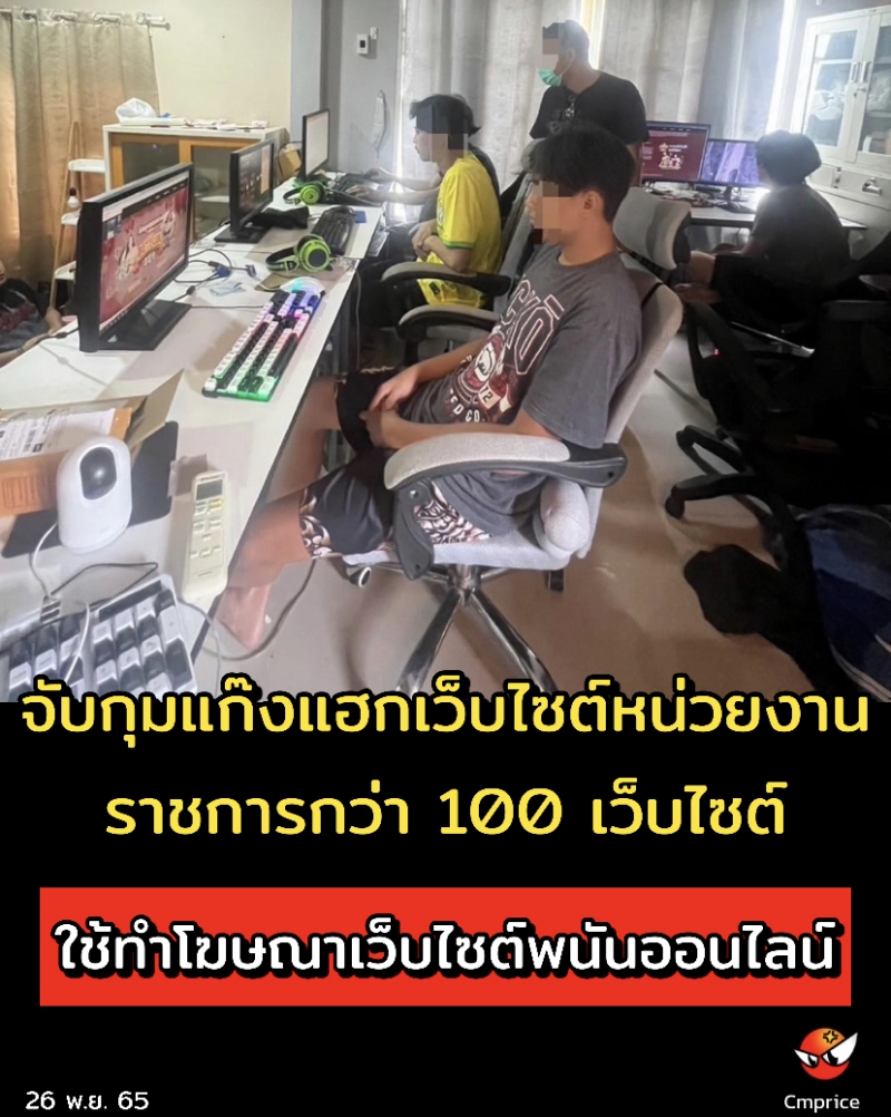 ศปอส.น. จับกุมแก๊งแฮกเว็บไซต์หน่วยงานราชการกว่า 100 เว็บไซต์ เพื่อนำไปใช้ทำโฆษณาเว็บไซต์พนันออนไลน์ ยอดเงินหมุนเวียนหลายร้อยล้าน
