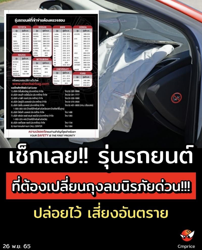 หรือตรวจสอบได้ที่ www.checkairbag.com