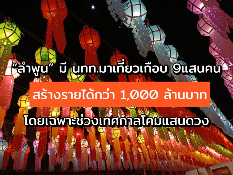 ลำพูน มีสถิติ นทท.มาเที่ยวเกือบ 9แสนคน สร้างรายได้กว่า 1,000 ล้านบาท โดยเฉพาะช่วงเทศกาลโคมแสนดวง