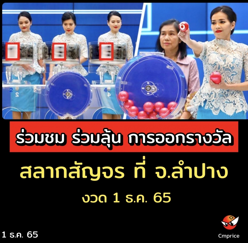 สำนักงานสลากกินแบ่งรัฐบาล จะทำการออกรางวัลสลากสัญจรงวดวันที่ 1 ธันวาคม 2565 ณ อาคารหอประชุมจังหวัดลำปาง เพื่อเปิดโอกาสให้ประชาชนในต่างจังหวัดได้เห็นขั้นตอนและวิธีการตลอดจนอุปกรณ์ที่ใช้ในการออกรางวัลด้วยตนเอง เพื่อจะได้ไม่หลงเชื่อข่าวลือเรื่องเลขเด็ดจากกลุ่มมิจฉาชีพที่ทำการหลอกลวงต้มตุ๋น ผ่านทางสังคมออนไลน์และการส่งจดหมายแอบอ้างว่าสามารถให้ตัวเลขที่จะออกรางวัลได้