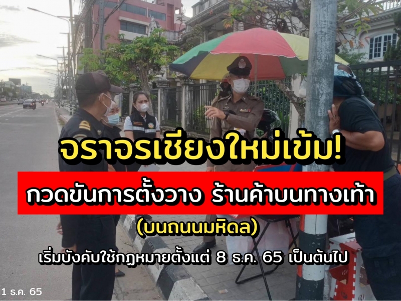 จราจรเชียงใหม่จึงฝากประชาสัมพันธ์ขอความร่วมมือผู้ใช้รถใช้ถนนและผู้ประกอบการร้านค้าที่ขายของบนทางเท้าโปรดปฏิบัติตามกฎหมายเพื่อแก้ไขปัญหาการจราจรและป้องกันการเกิดอุบัติเหตุร่วมกัน