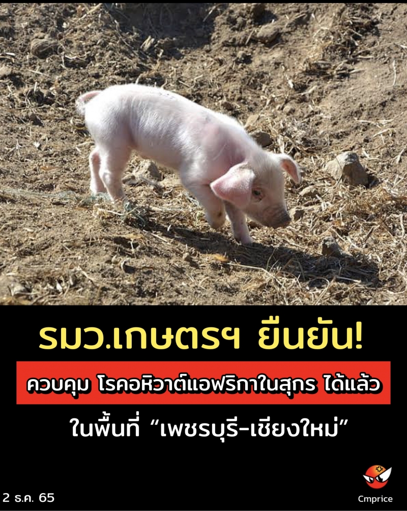 รัฐมนตรีว่าการกระทรวงเกษตรและสหกรณ์ ยืนยัน คุมโรคASF “เพชรบุรี-เชียงใหม่” ได้แล้ว ย้ำเกษตรกรเลี้ยงสุกรต้องสังเกตอาการสุกร ห้ามเคลื่อนย้าย เพื่อควบคุมการเเพร่ระบาคโรค