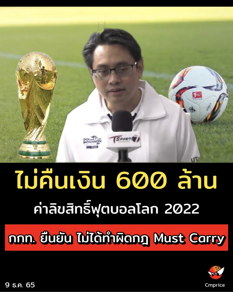 | • กกท. ยืนยัน ไม่ได้ทำผิดกฎ Must Carry (มัสต์แครี่) ลั่น! ไม่คืนเงิน 600 ล้าน ค่าลิขสิทธิ์ฟุตบอลโลก 2022 |