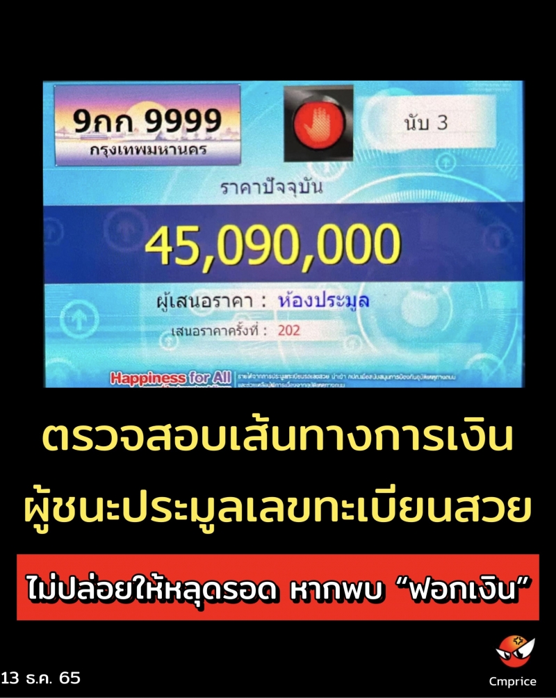 ตร.แจงจากกรณี เพจเฟซบุ๊ก “สายไหมต้องรอด” ได้ออกมาตั้งข้อสังเกตเรื่องดังกล่าว พร้อมโพสต์ข้อความระบุว่า” เดี๋ยวนี้เจ้าของเว็บพนันเขาหันมาเก็บสะสมป้ายทะเบียนแทนเงินสดกันแล้วหรอ?? ปปง. – สตช. ทำอะไรกันอยู่ #ฝากบิ๊กเด่น – บิ๊กโจ๊ก ตรวจสอบทีค่ะ #สายไหมต้องรอด พร้อมชี้เป้าๆๆๆๆๆๆ” โดยเป็นกรณีกรมขนส่งทางบก จัดงานประมูลทะเบียนรถยนต์เลขสวยหมวดอักษรพิเศษ”9กก ก้าวหน้ามหามงคล” ซึ่งมี บริษัท ไททัน แคปปิตอลกรุ๊ป โฮลดิ้งส์ จำกัด โดยมีนายแทนไท ณรงค์กูล เป็นผู้ชนะประมูลหมายเลข 9 กก 9999 ที่สร้างสถิติราคาสูงสุดที่45,090,000 บาท เป็นประวัติศาสตร์แห่งการประมูล ตามที่เสนอข่าวไปแล้วนั้น