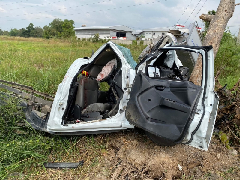 เมื่อรถอุปกรณ์ตัด-ถ่าง ถึงบริเวณจุดเกิดเหตุ พบเป็นอุบัติเหตุรถยนต์กระบะ ยี่ห้ออีซุสุ สีขาว บรรทุกน้ำแข็งบริษัทแห่งหนึ่ง เสียหลักแล้วพุ่งชนต้นไม้ไหล่ทาง มีผู้ขับขี่ได้รับบาดเจ็บติดอยู่ในรถ เป็นชาย อาการสาหัส เจ้าหน้าที่กู้ภัยหลายหน่วยงานเร่งใช้เครื่องตัด-ถ่าง ทำการช่วยเหลือ จนสามารถนำร่างผู้ได้รับบาดเจ็บออกจากตัวรถได้ในเวลาต่อมาและเร่งนำส่งรักษาตัว ยังโรงพยาบาลพื้นที่ใกล้เคียง เพื่อทำการรักษาต่อไป