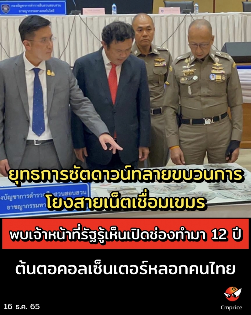 ต่อมาชุดสืบสวนได้ตรวจสอบพบมีความเกี่ยวข้องเชื่อมโยงกับเครือข่ายอินเตอร์เน็ตของบริษัท โทรคมนาคมแห่งชาติจำกัด (NT) โดยมีนายมโนรม สม( MR.MONOROM SOM ) ชาวกัมพูชา เป็นผู้ยื่นคำขอใช้บริการอินเทอร์เน็ตความเร็วสูงสำหรับองค์กร จากการตรวจสอบพบมีค่าบริการรายเดือนกว่า 200,000 บาท เป็นการขอใช้บริการภายในประเทศ แต่เมื่อลงพื้นที่ตรวจสอบกลับไม่พบจุดติดตั้งอินเตอร์เน็ตภายในประเทศดังกล่าวแต่อย่างใด จึงได้ตรวจสอบทางเทคนิคพบว่ามีการเชื่อมต่อสัญญาณอินเตอร์เน็ตข้ามไปฝั่งประเทศกัมพูชา สอดคล้องกับข้อมูลของบริษัท โทรคมนาคมแห่งชาติ จำกัด ไม่พบว่ามีสัญญาให้ใช้บริการระหว่างประเทศแต่อย่างใด เชื่อว่ามีการลักลอบนำสัญญาณอินเตอร์เน็ตจากประเทศไทยเข้าไปใช้ในกัมพูชา อย่างไรก็ตามปฏิบัติการดังกล่าวจะนำไปสู่ตัดวงจรขบวนการคอลเซ็นเตอร์ให้ได้มากที่สุด จะเน้นในเรื่องของการตัดวงจร ซิม-สาย-เสา ซึ่งในส่วนของซิม ได้มีการปฏิบัติการปิดล้อมตรวจค้นกวาดล้างโดยได้ตรวจยึดซิมโทรศัพท์มากกว่า 2 แสนเบอร์ ส่งผลให้สถานการณ์ลดลงไปกว่าร้อยละ 25 แต่สิ่งที่ต้องทำต่อไปคือเรื่องของสายและเสา ซึ่งหากสามารถตัดสัญญาณที่มีการลักลอบลงได้ก็จะทำให้สถานการณ์เบาลงได้เยอะ เพราะขบวนการนี้ทำมานานกว่า 12 ปี อีกทั้งมีเจ้าหน้าที่รัฐเข้าไปมีส่วนเกี่ยวข้องโดยขั้นตอนต่อไปทางบช.สอท. ร้องทุกข์ต่อบก.ปปป. ให้ดำเนินการ หากพบว่ามีเจ้าหน้าที่รัฐเข้าไปเกี่ยวข้องจะต้องดำเนินการตามมาตรา 157 ต่อไป และหากพบว่าใครมีส่วนรู้เห็นต่อการกระทำความผิด เป็นตัวการในการสนับสนุนก็จะต้องดำเนินการตามม.83 อีกด้วย