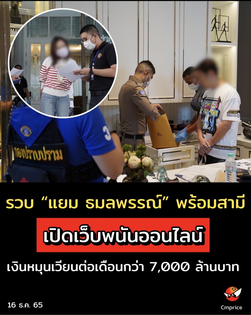 รวบ แยม ธมลพรรณ์ พร้อมสามี เปิดเว็บพนันออนไลน์ เงินหมุนเวียนต่อเดือนกว่า 7,000 ล้านบาท