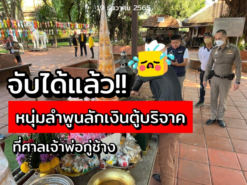| • จับได้แล้ว!! หนุ่มลำพูน ลักเงินในตู้บริจาคที่ศาลเจ้าพ่อกู่ช้าง |