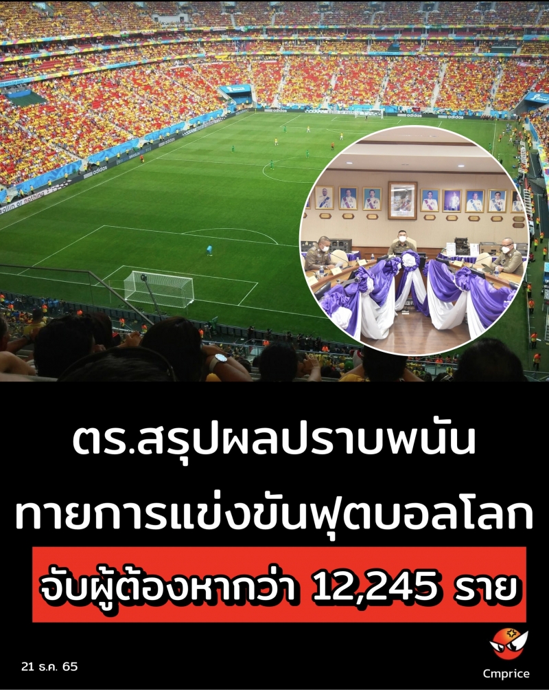ตร.สรุปผลปราบพนันทายการแข่งขันฟุตบอลโลก จับผู้ต้องหากว่า 12,245 ราย
