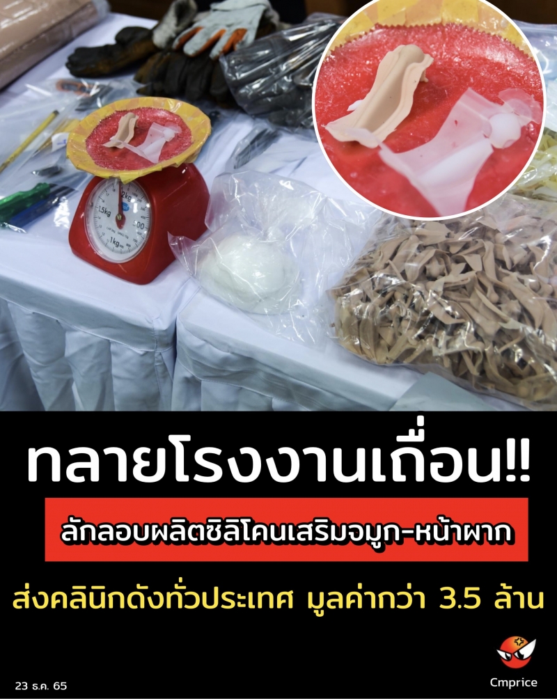 ทลายโรงงานเถื่อน ลักลอบผลิตซิลิโคนเสริมจมูก-หน้าผาก ส่งคลินิกดังทั่วประเทศ มูลค่ากว่า 3.5ล้านบาท