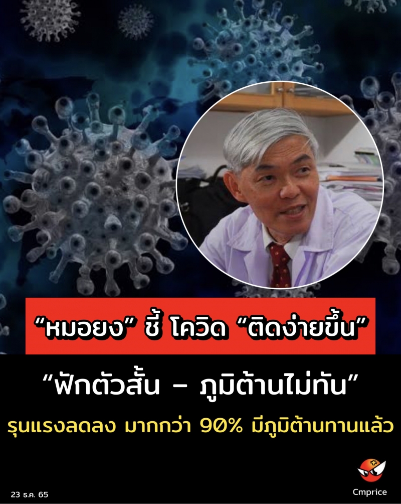 | • หมอยง ชี้โควิดติดง่ายขึ้น ฟักตัวสั้น ภูมิต้านไม่ทัน รุนแรงลดลง มากกว่า 90% มีภูมิต้านทานแล้ว |