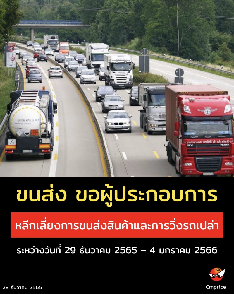 กรมการขนส่งทางบก ขอผู้ประกอบการหลีกเลี่ยงการขนส่งสินค้าและการวิ่งรถเปล่าในช่วงเทศกาลปีใหม่