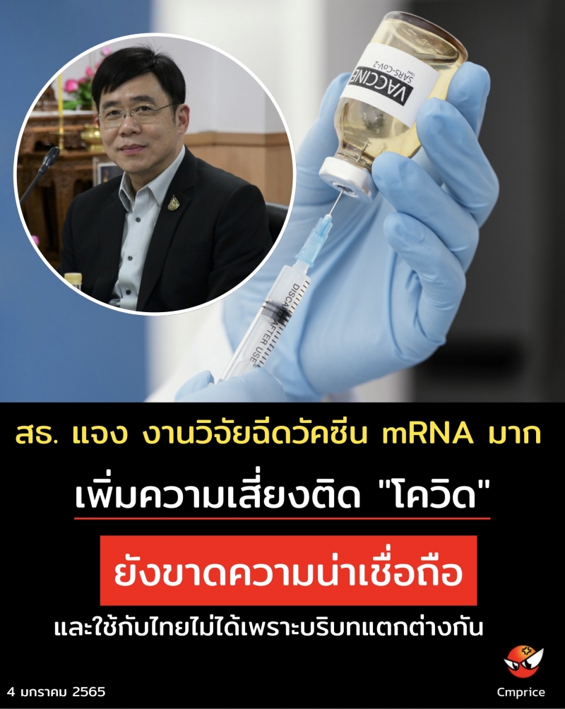 | • สธ. แจง ข้อมูลฉีดวัคซีน mRNA มาก เพิ่มความเสี่ยงติด "โควิด" ขาดความน่าเชื่อถือ |