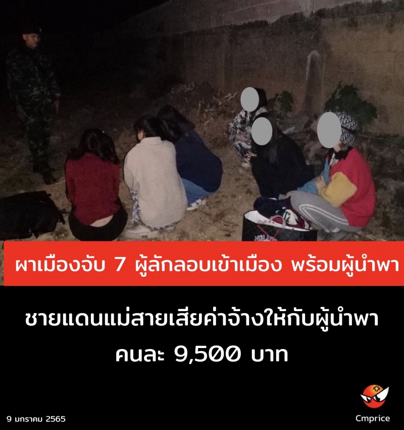 ผาเมือง จับ 7 ผู้ลักลอบเข้าเมือง พร้อมผู้นำพา ชายแดนแม่สายเสียค่าจ้างให้กับผู้นำพา คนละ 9,500 บาท