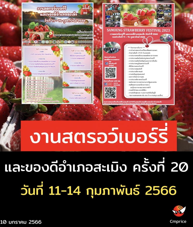 | • งานสตรอว์เบอร์รี่และของดีอำเภอสะเมิง ครั้งที่ 20 ระหว่างวันที่ 11-14 กุมภาพันธ์ 2566 |