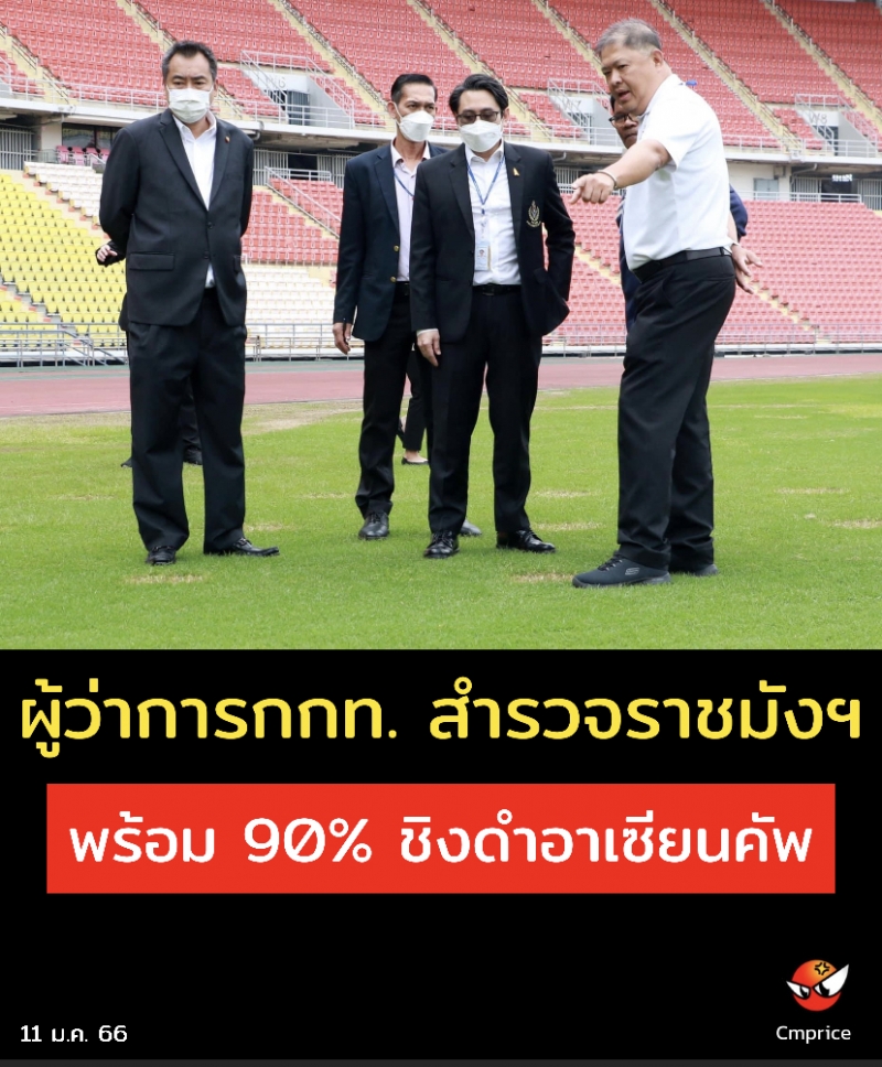 ผู้ว่าการการกีฬาแห่งประเทศไทย ตรวจความพร้อมราชมังคลากีฬาสถาน รับนัดชิงชนะเลิศ AFF Mitsubishi Electric Cup ระหว่างทีมชาติไทย กับ ทีมชาติเวียดนาม นัดที่ 2 วันที่ 16 ม.ค.นี้เบื้องต้นพบสนามมีความพร้อม 90%
