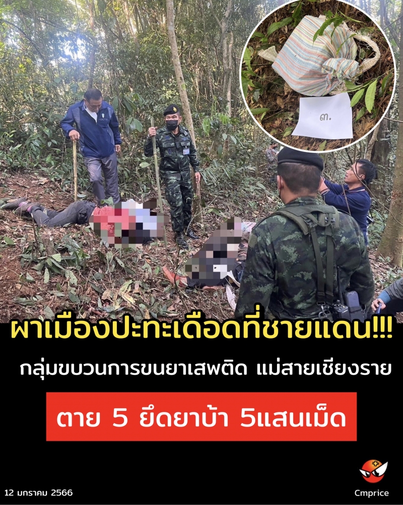 ผาเมืองปะทะเดือดที่ชายแดน!!! กลุ่มขบวนการขนยาเสพติด ตาย 5 ยึดยาบ้า 500,000 เม็ด ชายแดนแม่สาย