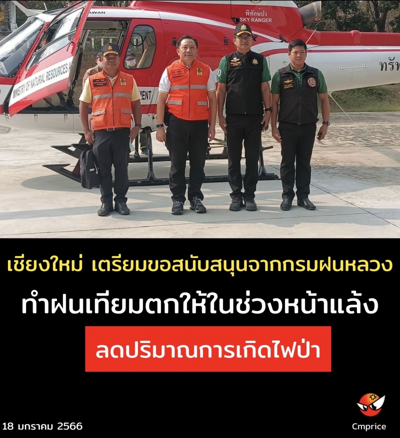 | • เชียงใหม่ เตรียมขอสนับสนุนจากกรมฝนหลวง ให้ทำฝนเทียมตกในช่วงหน้าแล้ง ลดปริมาณการเกิดไฟป่า |