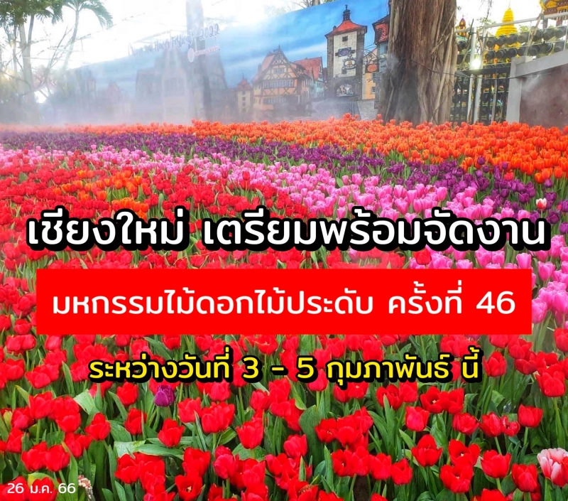เชียงใหม่ เตรียมพร้อมจัดงานมหกรรมไม้ดอกไม้ประดับ ครั้งที่ 46 ระหว่างวันที่ 3 - 5 กุมภาพันธ์ นี้