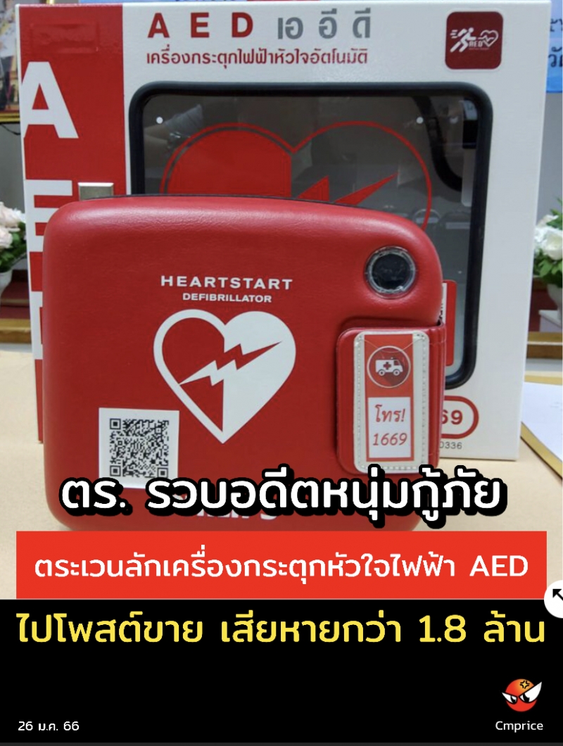 1.เครื่องกระตุกหัวใจไฟฟ้าชนิดอัตโนมัติ (Automated External Defibrillator, AED) ตรวจยึดได้ในพื้นที่ สน.บางรัก