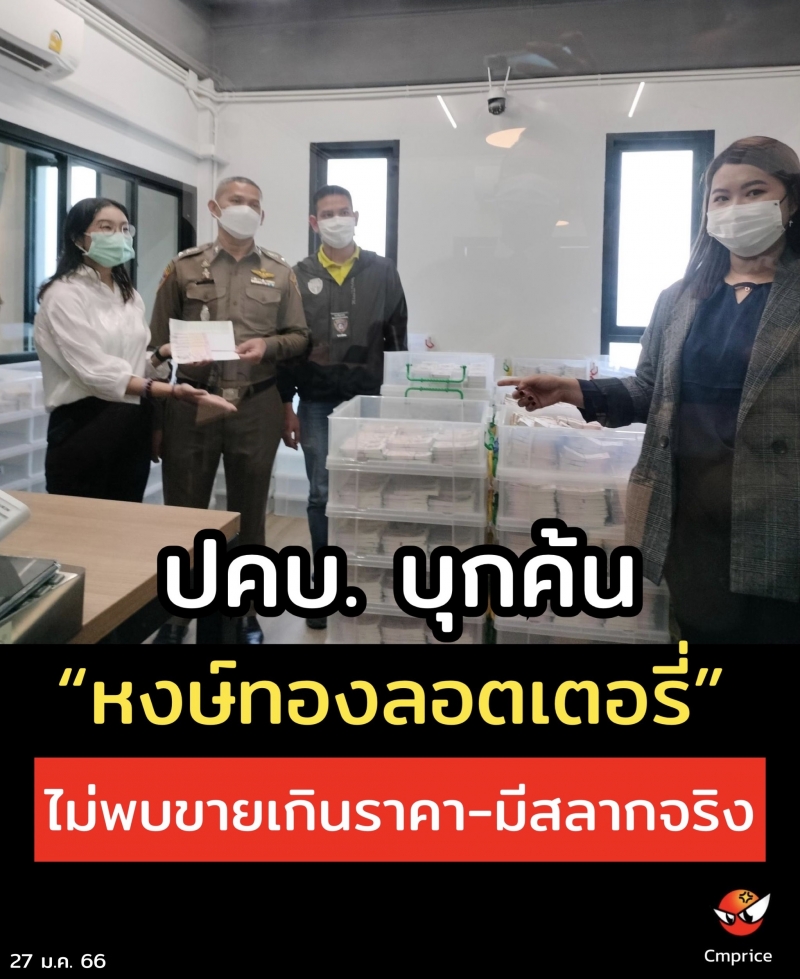| • ปคบ. บุกค้น หงษ์ทองลอตเตอรี่ ไม่พบขายเกินราคา-มีสลากจริง |