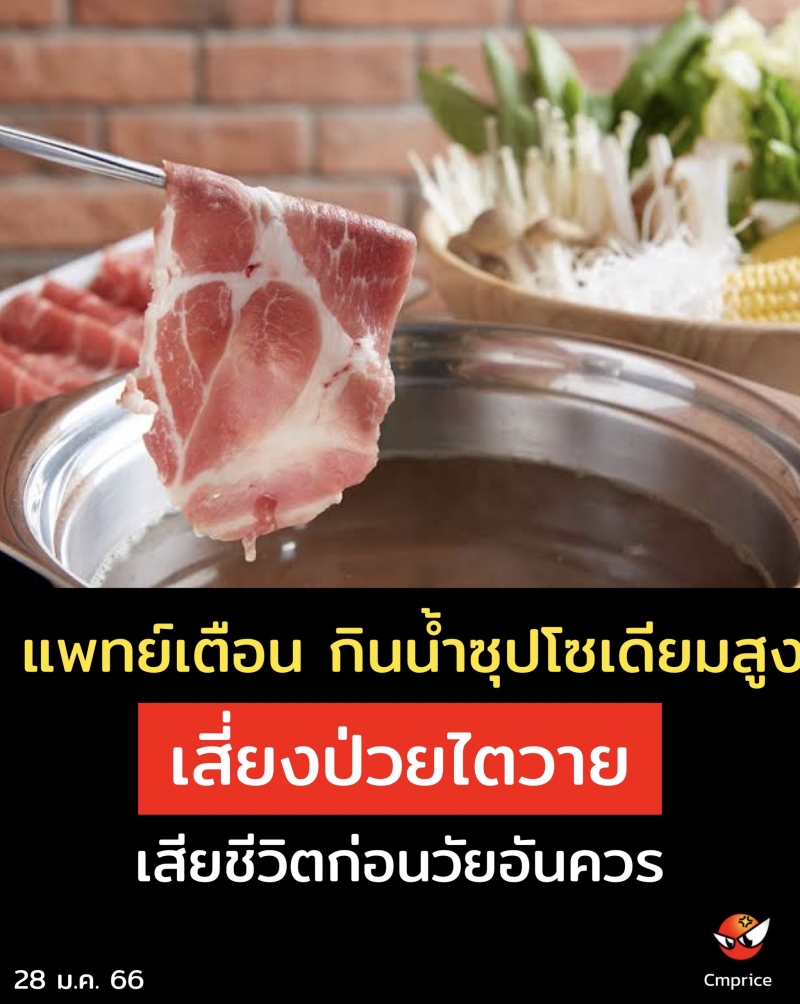 แพทย์ เตือน กินน้ำซุปโซเดียมสูง เสี่ยงป่วยไตวาย เสียชีวิตก่อนวัยอันควร สสส. สานพลัง เครือข่ายลดบริโภคเค็มปลุกกระแสสังคม ผุดโครงการรณรงค์ “ลดเค็ม ลดโรค” ขยายชุมชน-มหาวิทยาลัย ชวนปรับพฤติกรรม “ลดซด ลดปรุง ลดอาหารแช่แข็ง” ตัดตอนโรค NCDs