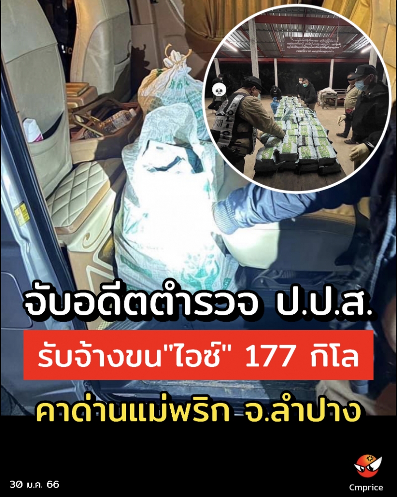 ตำรวจภาค 5 จับอดีตตำรวจ ป.ป.ส. รับจ้างขน"ไอซ์" 177 กิโล คาด่านแม่พริก จ.ลำปาง