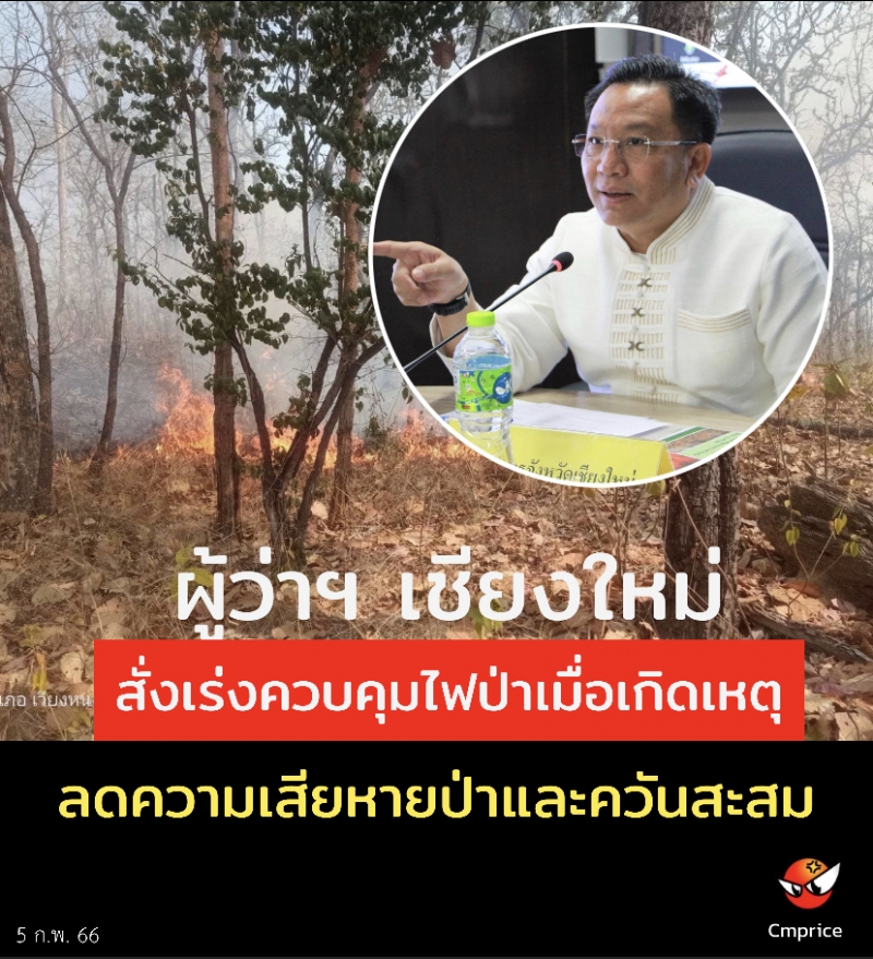 | • ผู้ว่าฯ เชียงใหม่ สั่งเร่งควบคุมไฟป่าเมื่อเกิดเหตุ ลดความเสียหายป่าและควันสะสม |