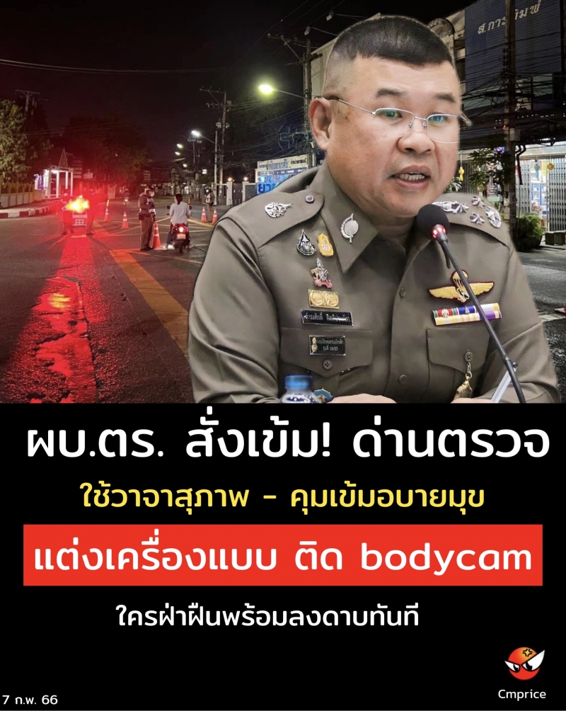 ผบ.ตร.สั่งเข้มทุกหน่วย ปฏิบัติตามกฎเหล็กจุดตรวจ ตำรวจแต่งเครื่องแบบ มี bodycam บันทึกข้อมูลด่าน ใช้วาจาสุภาพ แม่นกฎหมาย นำหลักรัฐศาสตร์มาช่วยในการตรวจตรานักท่องเที่ยวเพื่อสร้างภาพลักษณ์บรรยากาศการท่องเที่ยวที่ดี พร้อมสั่งคุมอบายมุขทุกประเภท ห้ามปล่อยปละละเลย ใครฝ่าฝืนพร้อมลงดาบทันที