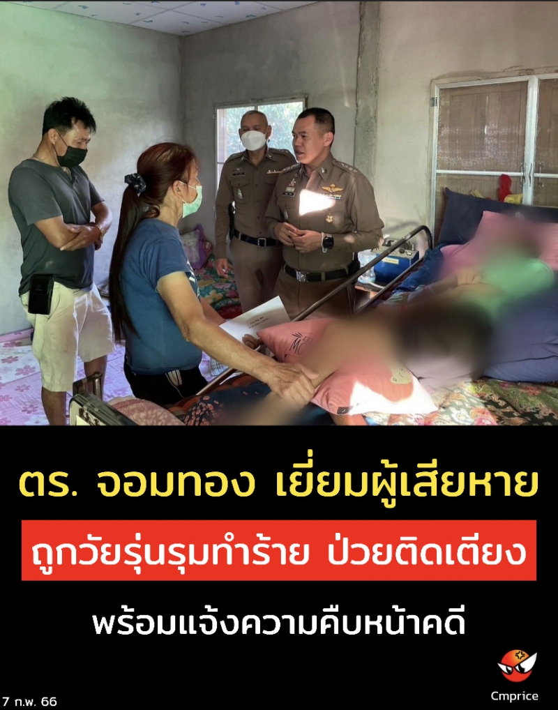 ตร. จอมทอง เยี่ยมผู้เสียหายถูกวัยรุ่นรุมทำร้าย ป่วยติดเตียง พร้อมแจ้งความคืบหน้าคดี