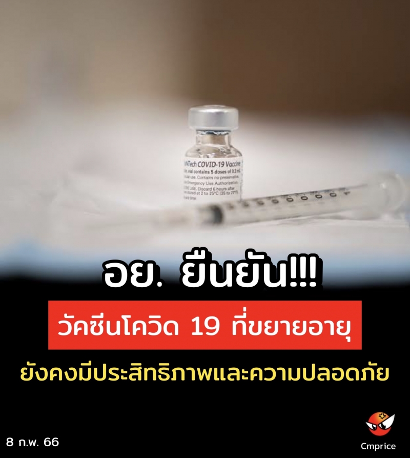 นายแพทย์ไพศาล ดั่นคุ้ม เลขาธิการคณะกรรมการอาหารและยา เปิดเผยว่า ตามที่มีการนำเสนอประเด็นในสื่อออนไลน์เกี่ยวกับการขยายอายุวัคซีนโควิด 19 ของไฟเซอร์นั้น สำนักงานคณะกรรมการอาหารและยา (อย.) ขอชี้แจงว่า อย. มีมาตรฐานในการพิจารณาขยายอายุวัคซีนตามแนวทางขององค์การอนามัยโลก ซึ่งผ่านการประเมินข้อมูลจากผู้เชี่ยวชาญ โดยพิจารณาจากข้อมูลการศึกษาความคงสภาพระยะยาวที่อุณหภูมิ -60 ถึง-90 องศาเซลเซียส ซึ่งจะมีการปรับปรุงเป็นระยะอย่างต่อเนื่องตามข้อมูลผลการทดสอบความแรง (Potency) ความบริสุทธิ์ (Purity) ความปราศจากเชื้อ (Sterility) ประกอบกับข้อมูลรายงานอาการไม่พึงประสงค์หรือปัญหาคุณภาพของผลิตภัณฑ์จากผู้ใช้ยาอย. จึงอนุญาตให้ขยายอายุวัคซีนได้