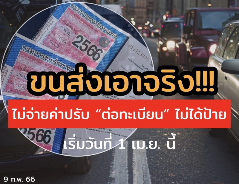 | • ขนส่งเอาจริง ไม่จ่ายค่าปรับ ต่อทะเบียน ไม่ได้ป้าย เริ่มตั้งแต่วันที่ 1 เม.ย. นี้ |