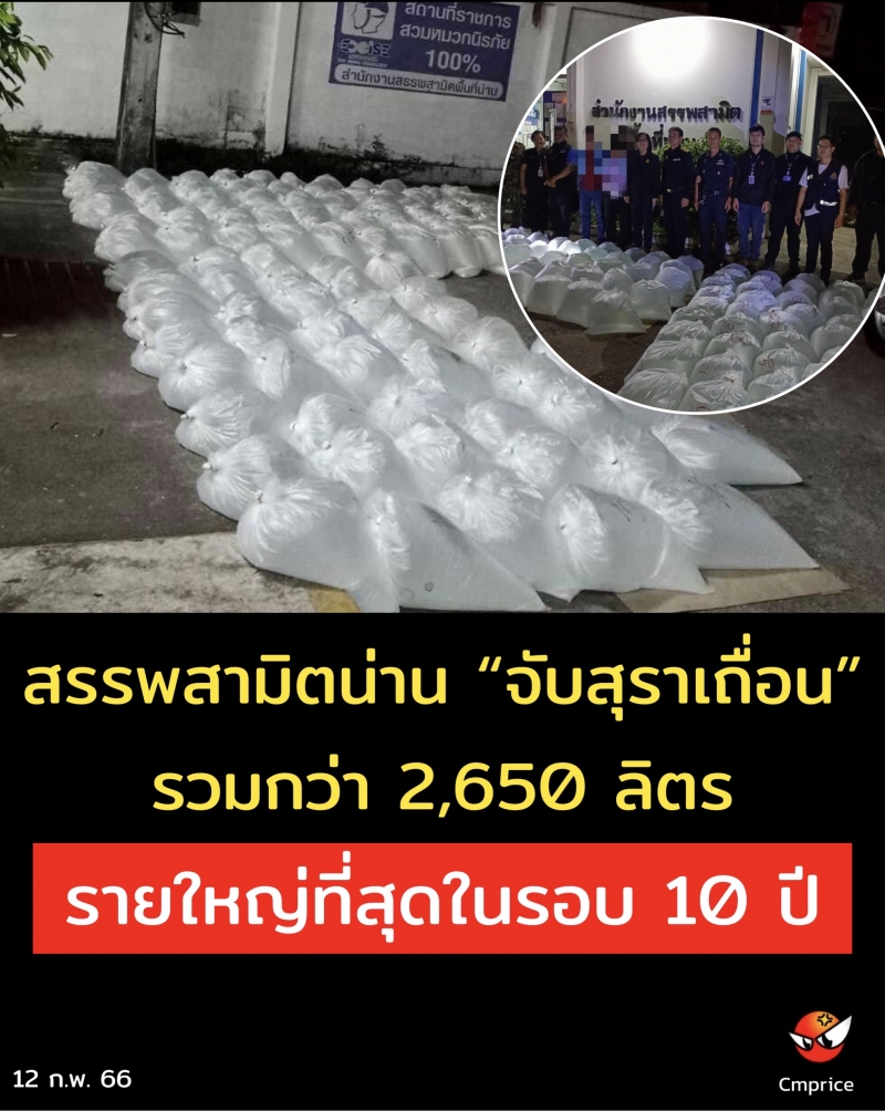 สรรพสามิตน่าน จับสุราเถื่อน รายใหญ่ที่สุดในรอบ 10 ปี กว่า2,650 ลิตร