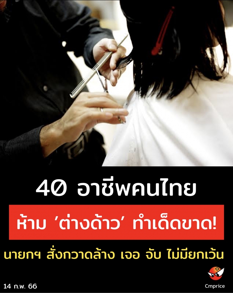 40 อาชีพคนไทย ห้ามคนต่างด้าวทำเด็ดขาด! นายกฯ สั่งกวาดล้างแรงงานต่างชาติแย่งอาชีพคนไทย
