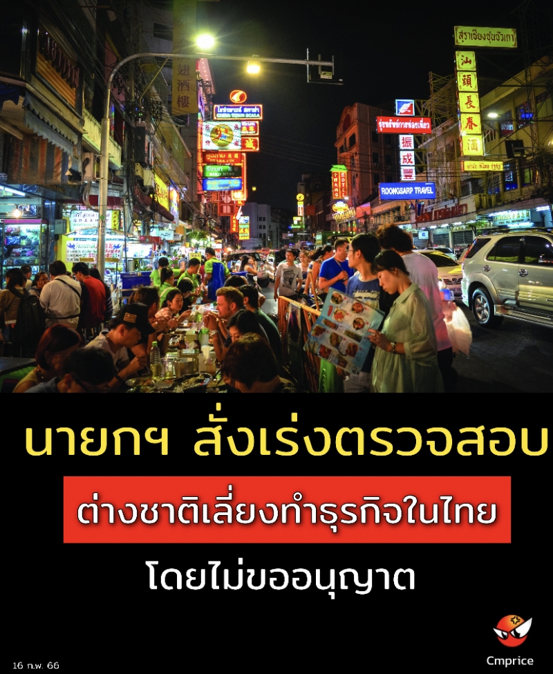 | • นายกฯ เร่งติดตามปัญหาต่างชาติเลี่ยงทำธุรกิจในไทยโดยไม่ขออนุญาต กำชับทุกหน่วยงานลงพื้นที่ตรวจสอบอย่างละเอียด |