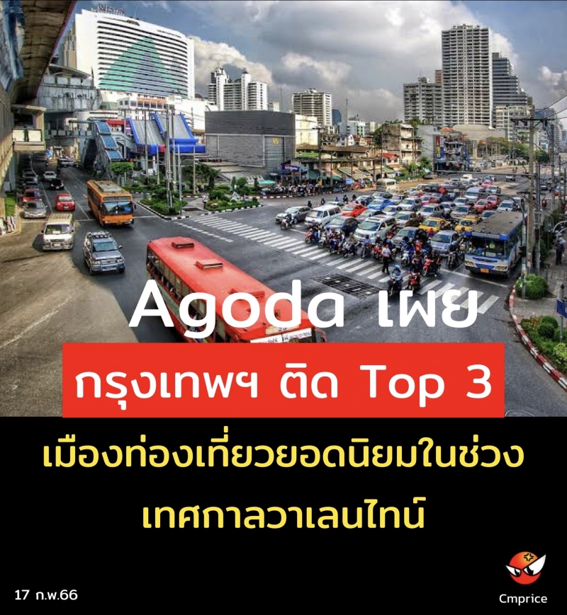 | • Agoda เผย กรุงเทพฯ ติด Top 3 เมืองท่องเที่ยวยอดนิยมในช่วงเทศกาลวาเลนไทน์ |