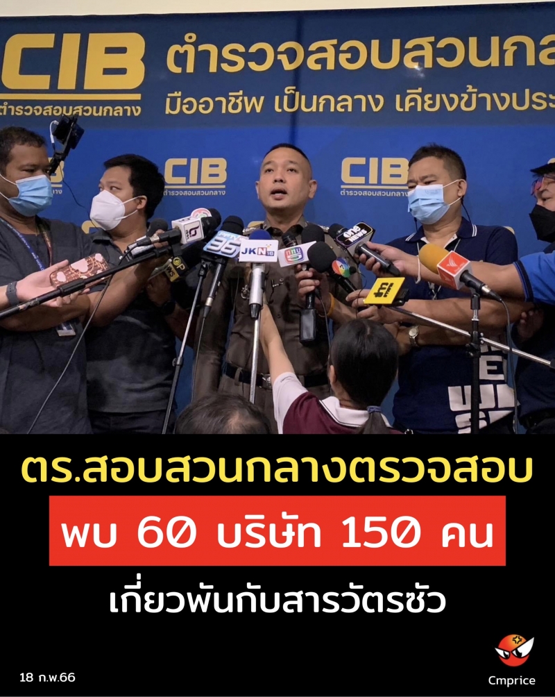 | • ตำรวจสอบสวนกลางตรวจสอบพบ 60 บริษัท 150 คน เกี่ยวพันกับสารวัตรซัว |