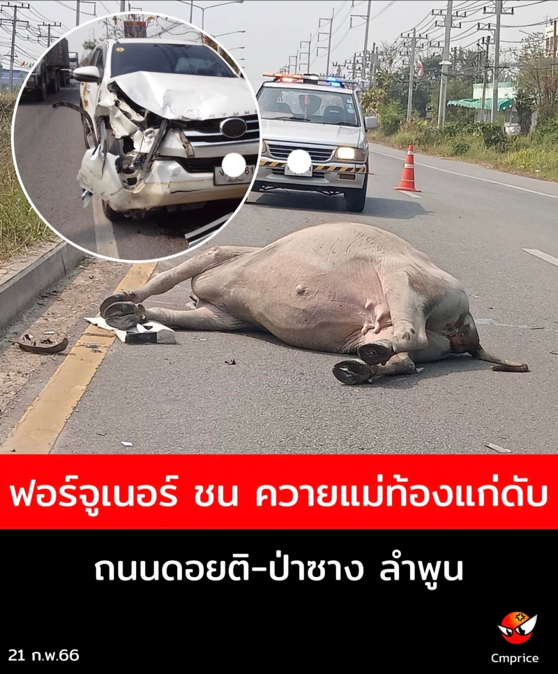 วันที่ 20 กุมภาพันธ์ 2566 เวลา 11.25น. รับแจ้งจาก สภ.เหมืองจี้ เหตุ ว.40 เกิดอุบัติเหตุ รถยนต์กะบะฟอร์จูเนอร์ ชนควาย ชนกับ ควายแม่ท้องแก่ เหตุเกิด ถนนดอยติ-ป่าซาง(ใกล้แยกเครือสหพัฒน์) จ.ลำพูน มุ่งหน้าไปทาง แยกไฟแดงป่าสัก ทำให้ด้านหน้ารถยนต์พังยับ กู้ภัยอัมรินทร์ใต้ลำพูน ออกตรวจสอบร่วมกับ สายตรวจดอยติ และ กู้ชีพป่าสัก พบเบื้องต้น พบผู้บาดเจ็บ 2ราย ชายและหญิง บาดเจ็บถลอกตามร่างกาย ส่วนเเม่ควายและลูกในท้อง เสียชีวิต