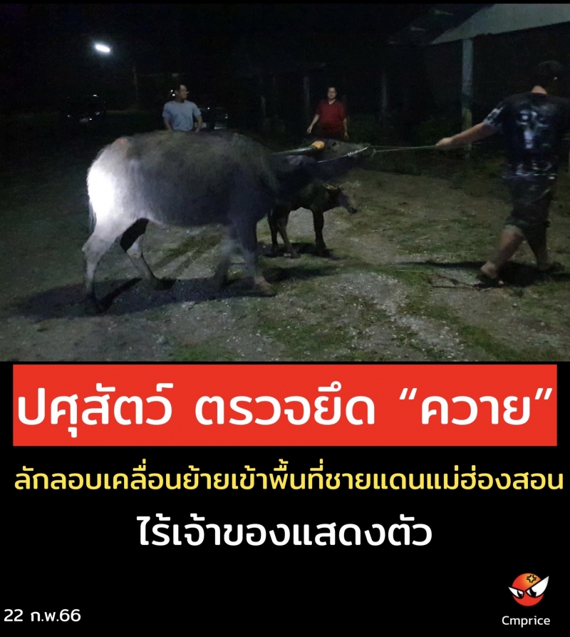 นายสัตวแพทย์สมชวน รัตนมังคลานนท์ อธิบดีกรมปศุสัตว์ เปิดเผยว่า ได้รับรายงานจากสารวัตรกรมปศุสัตว์ว่า มีสายลับ (ไม่ประสงค์ออกนาม) แจ้งว่าจะมีการลักลอบเคลื่อนย้ายโค กระบือมีชีวิตเข้าราชอาณาจักรผ่านเส้นทางบ้านเสาหิน อ.แม่สะเรียง จ.แม่ฮ่องสอน จึงได้ประสานงานกับเจ้าหน้าที่ชุดลาดตระเวนศุลกากรแม่สะเรียง จากการปฏิบัติงานของชุดลาดตระเวนพบกระบือจำนวน 6 ตัว ผูกไว้ริมถนน ซึ่งเป็นเส้นทางไปยังจุดผ่อนปรนการค้าบ้านเสาหินประกอบกับเป็นช่วงเวลาใกล้เที่ยงวันซึ่งมีอากาศค่อนข้างร้อน โดยผิดปกติวิสัยของกระบือซึ่งไม่ชอบอากาศร้อน และบริเวณดังกล่าวไม่มีหญ้า หรือฟางเลี้ยงสัตว์สำหรับกระบือ จึงมีเหตุอันควรสงสัยว่าเป็นกระบือที่มีถิ่นกำเนิดจากต่างประเทศที่ได้รับแจ้งว่าลักลอบนำเข้ามา เจ้าหน้าที่ชุดลาดตระเวนได้ทำการสอบถามชาวบ้านบริเวณนั้น ให้การว่าพบรถกระบะต้องสงสัยขับมาจอดบริเวณดังกล่าวแล้วนำกระบือลงมาผูกไว้ จากนั้นขับขี่รถออกไปด้วยความรวดเร็ว โดยชาวบ้านไม่เคยรู้จักบุคคลดังกล่าวมาก่อน เจ้าหน้าที่จึงได้เฝ้ารออยู่ที่บริเวณดังกล่าว แต่ไม่ปรากฏผู้แสดงตนเป็นเจ้าของกระบือ จึงเชื่อได้ว่าเป็นกระบือลักลอบตามที่สายลับรายงาน และผู้กระทำผิดพบเห็นชุดลาดตระเวนจึงกลัวความผิดและละทิ้งกระบือไว้บริเวณนั้น ซึ่งกระบือมีชีวิตดังกล่าวไม่มีหลักฐานการผ่านพิธีการทางศุลกากรอย่างถูกต้องอันเป็นของพึงต้องริบตามมาตรา 166 ประกอบมาตรา 167 แห่งพระราชบัญญัติศุลกากร พ.ศ. 2560 เจ้าของหรือผู้ครอบครองอาจมีความผิดตามมาตรา 242 ,มาตรา 245 , มาตรา 246 และมาตรา 252 และความผิดตามมาตรา 31 แห่ง พ.ร.บ.โรคระบาดสัตว์ พ.ศ. 2558 ส่วนกระบือมีชีวิต จำนวน 6 ตัว ให้ด่านกักกันสัตว์แม่ฮ่องสอนกัก และทดสอบโรคระบาดสัตว์ ณ คอกกักด่านกักกันสัตว์แม่ฮ่องสอน อ.แม่สะเรียง จ.แม่ฮ่องสอน ตามระเบียบต่อไป