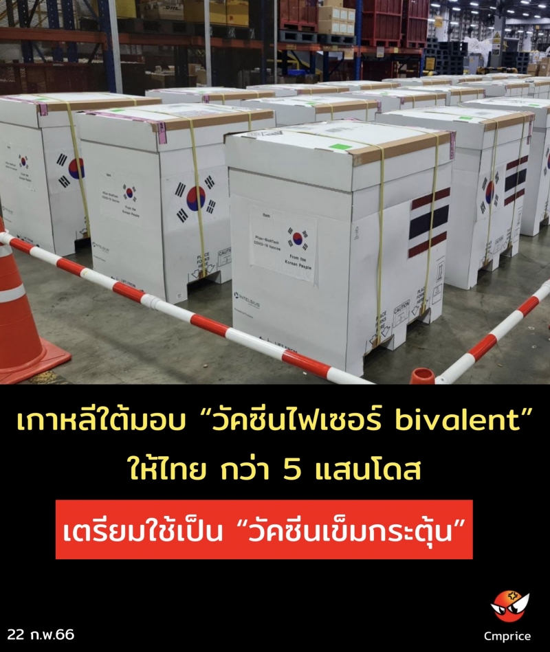 | • เกาหลีใต้มอบ วัคซีนไฟเซอร์ bivalent กว่า 5 แสนโดส สธ. เตรียมใช้เป็น วัคซีนเข็มกระตุ้น |