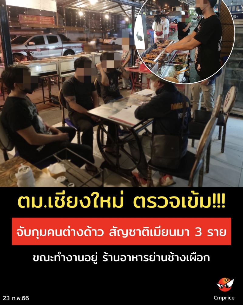 ตม.เชียงใหม่ ตรวจเข้ม!!! จับกุมคนต่างด้าว สัญชาติเมียนมา 3 ราย ขณะกำลังทำงานอยู่ ณ ร้านอาหารย่านช้างเผือก